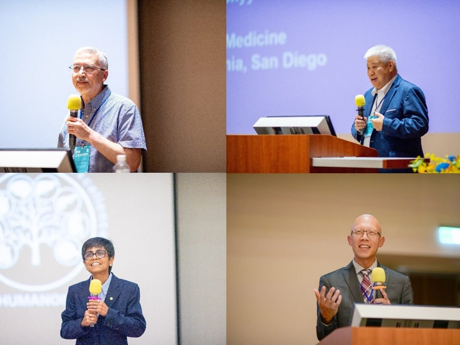 今年的議題涵蓋人工智慧、多體學、精準醫療與藥物研發等核心領域,邀請Massimiliano Di Ventra教授(左上)、史允中教授(右上)、Pradipta Ghosh教授(左下)、Albert Hsiao教授(右下)分享。